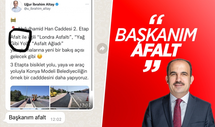 Konya Büyükşehir Belediye Başkanı Uğur İbrahim Altay, sosyal medya hesabından Abdulhamid Han Caddesi 2. Etap çalışmalarını duyurdu. Başkan Altay'ın yaptığı paylaşımda ise bir yazım yanlışı olduğunu gören takipçisi uyardı. Altay ve takipçisinin arasında geçen işte o diyalog...