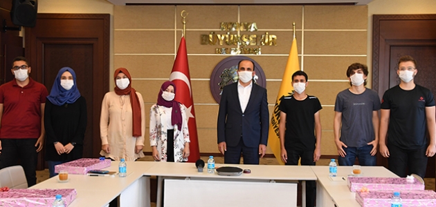 YKS’de ilk 100’e girerek Konya’nın gururu olan; Batuhan Sarıyıldız, Zehra Nur Aslaner, Rufeyda Yağcı, Şerife Büyükyılmaz, Halil Karabacak, Enes Sait Besler ve Semih Mert Yorul ile bir araya gelen Başkan Altay, sınavda gösterdikleri başarıdan dolayı hepsini ayrı ayrı tebrik etti.