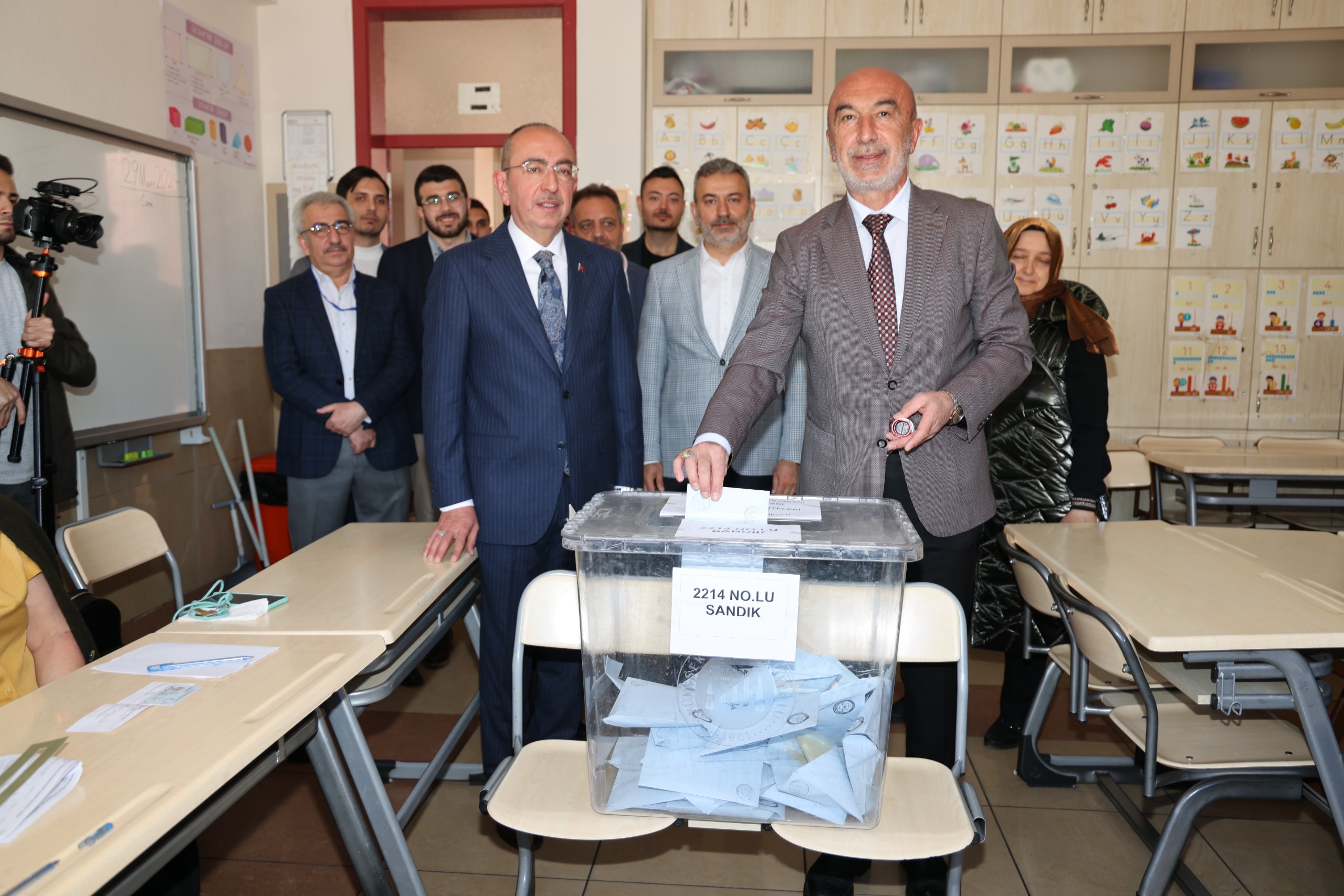 Seçim sonuçlarının tüm Türkiye’ye hayırlar getirmesini dileyen Başkan Hasan Angı, “Bir seçmen olarak görevimizi yaptık. Sandığıma gittim ve oyumu kullandım. Öncelikle tüm adaylarımıza hayırlı olmasını diliyorum. Bu seçimlerin ilçelerimiz, illerimiz ve aziz vatanımız için hayırlar getirmesini temenni ediyorum. Yoğun bir kampanya döneminden sonra artık bugün söz kıymetli hemşehrilerimizde. Sonuç sandıkta belli olacak, sözü vatandaş söyleyecek. Bu ülkenin yoluna güçlü bir şekilde devam edeceğine ve milletimizin Türkiye Yüzyılı’nı gerçek belediyecilikle güçlendireceğine inanıyoruz. Sonuçların başta 31 ilçemiz olmak üzere, Konya’mıza, ülkemize ve tüm partilerimize hayırlı olmasını diliyorum. Emek vermiş tüm teşkilat mensuplarımıza teşekkür ediyorum. Kıymetli hemşehrilerimize de sandıklarına gelip oylarını kullanmalarından dolayı ayrı ayrı şükranlarımı arz ediyorum” dedi.