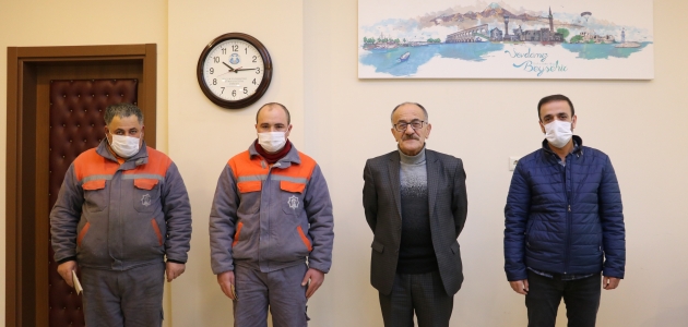 Beyşehir’de temizlik esnasında bulduğu bir miktar parayı sahibine teslim eden temizlik işçilerini Beyşehir Belediye Başkanı Adil Bayındır ödüllendirdi.