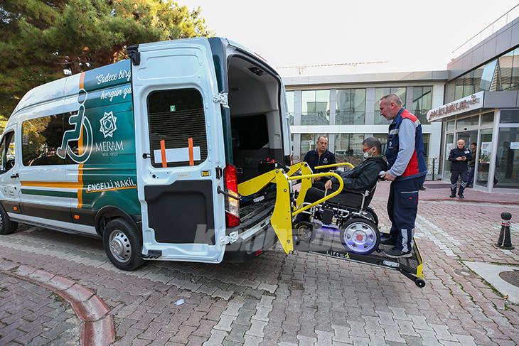 Engelli vatandaşların hastanelere ulaşımındaki zorlulukların aşılması için de çalışma başlatan Meram Belediyesi, engelli nakil aracı ile tekerlekli sandalyeli vatandaşları hastane randevularına ulaştırıyor.