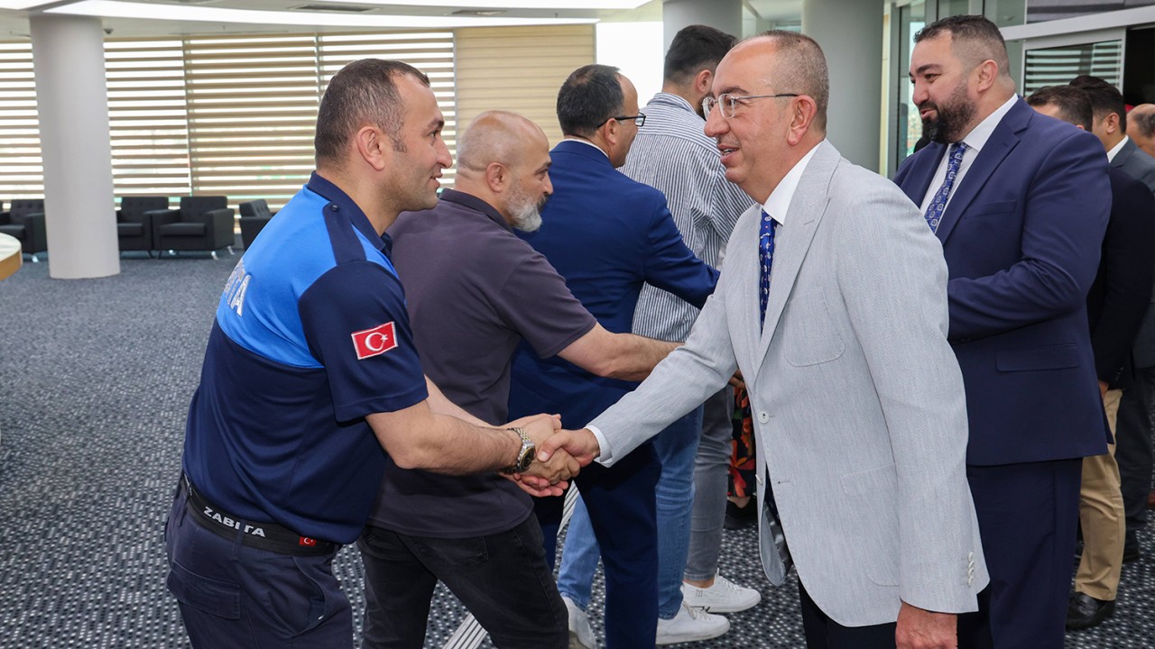 Başkan Kavuş, konuşmasının ardından burada görev yapan belediye personeliyle bayramlaştı.
