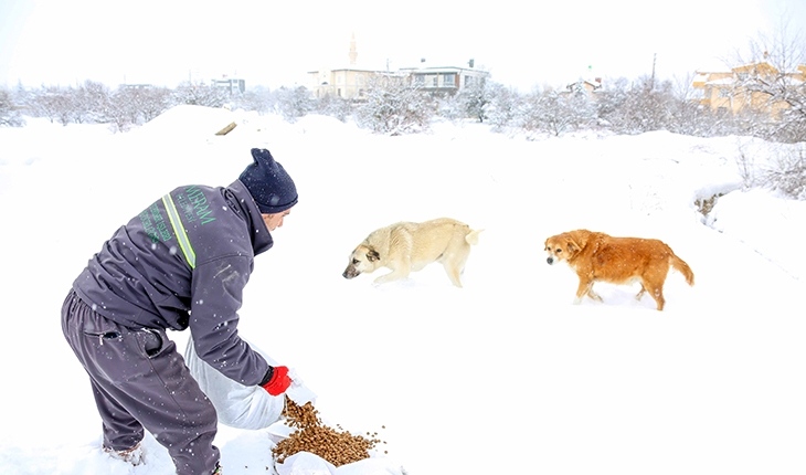 Meram Belediyesi, yoğun kar yağışı ve aşırı soğuklar nedeniyle yiyecek bulmakta zorlanan sokak hayvanlarını unutmadı.