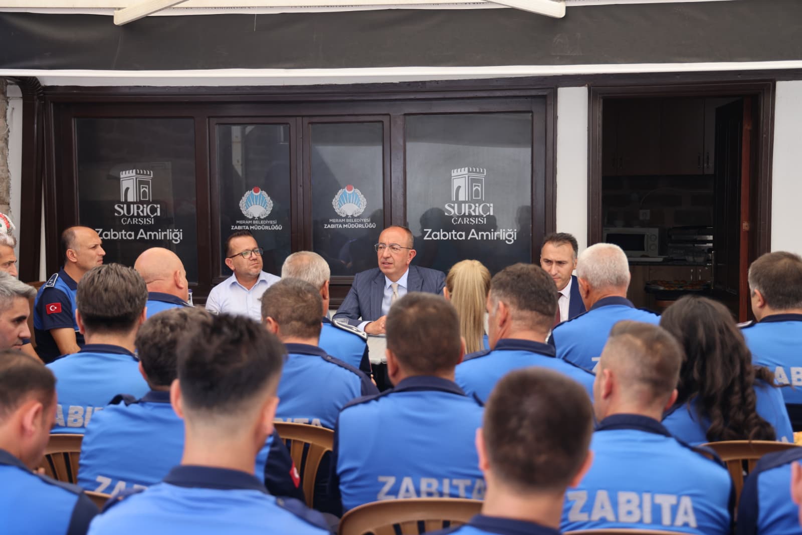 Meram Belediye Başkanı Mustafa Kavuş, Zabıta Haftası dolayısıyla Suriçi Çarşısı Zabıta Amirliği’ni ziyaret etti. Ziyaretinde zabıta personeliyle bir süre sohbet eden Başkan Kavuş, teşkilatın toplum düzeni ve şehir hayatındaki önemine dikkat çekti.