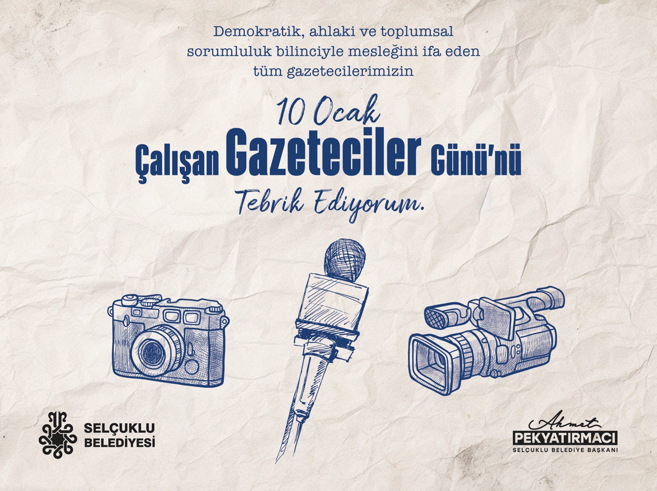 Selçuklu Belediye Başkanı Ahmet Pekyatırmacı, 10 Ocak “Çalışan Gazeteciler Günü” nedeniyle bir kutlama mesajı yayımladı.