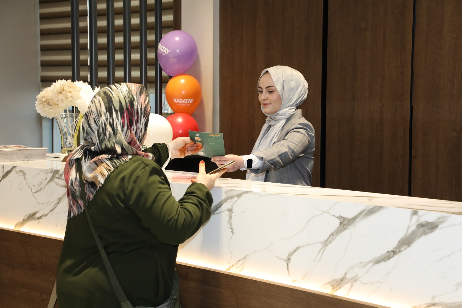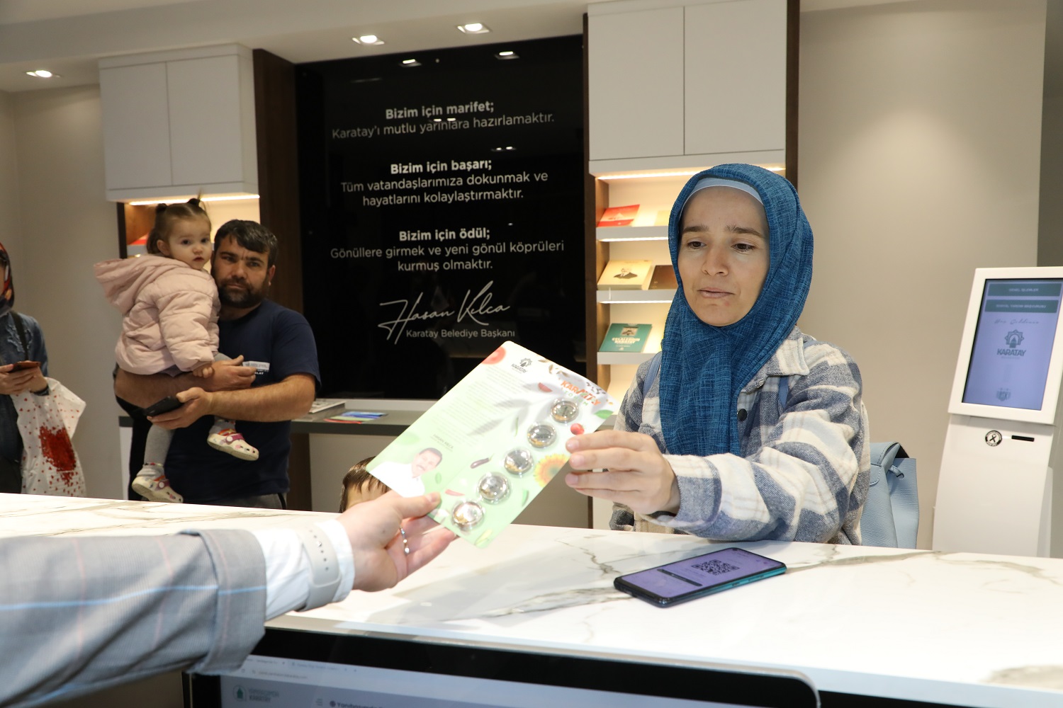 Başvurusunu tamamlayan ve barkodunu alan vatandaşlar, Karatay Belediyesi Hizmet