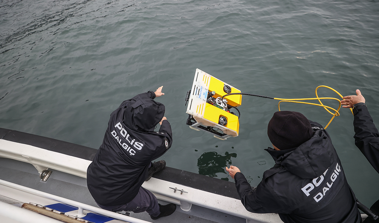 Önceden belirlenen noktada robotu hazırlayan ekipler, denizin 60 metre derinliğine kadar bir personelin kumanda kontrolüyle inip görüntüleme yaptı.Yapılan çalışmalarda herhangi bir bulguya rastlanmadı.