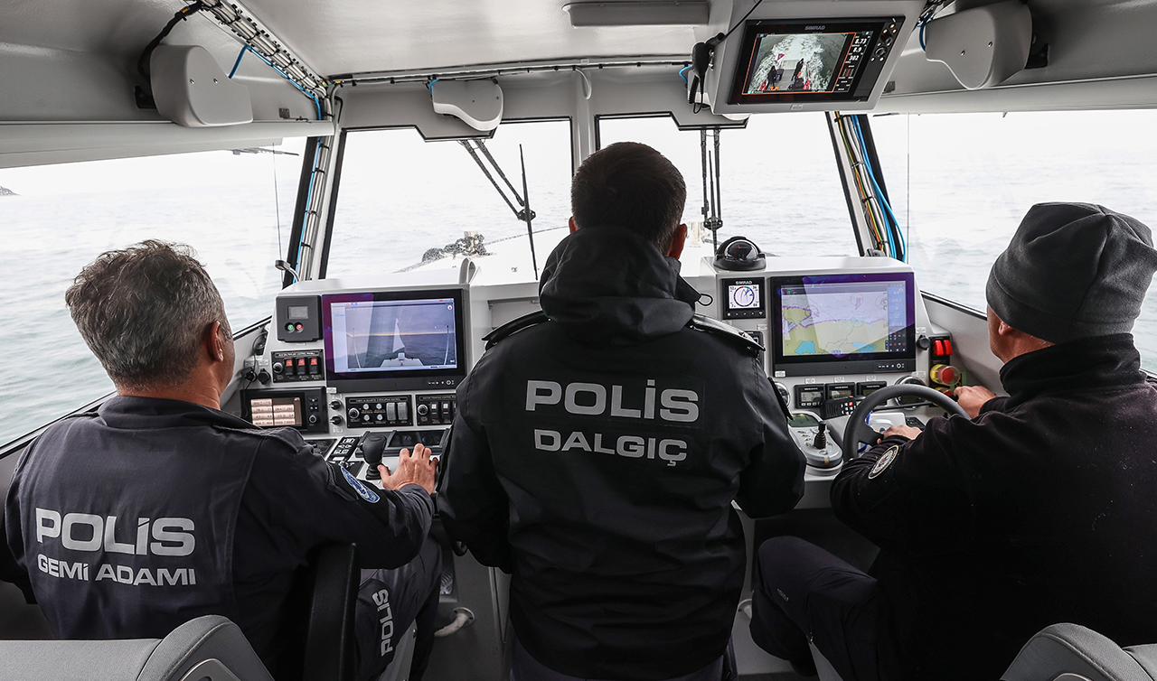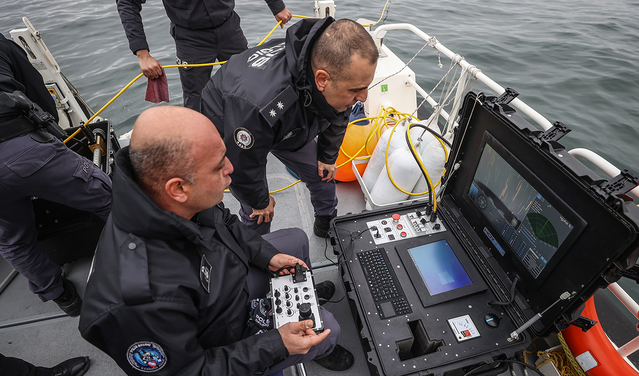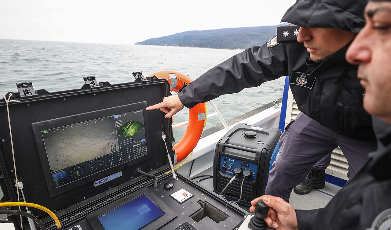 Deniz polisinin kurbağa adamlar ve gemi adamları ise ihtiyaç halinde 42 metreye kadar dalış gerçekleştirebiliyor.Ekiplerin ROV ile yaptığı tarama çalışmaları görüntülendi.Yapılan faaliyette Kurşunlu Limanı'ndan 4 mil uzağa kadar açılan ekipler, deniz üstünde bottaki özel kamera sistemi ve personel tarafından dürbünlerle tarama gerçekleştirdi.