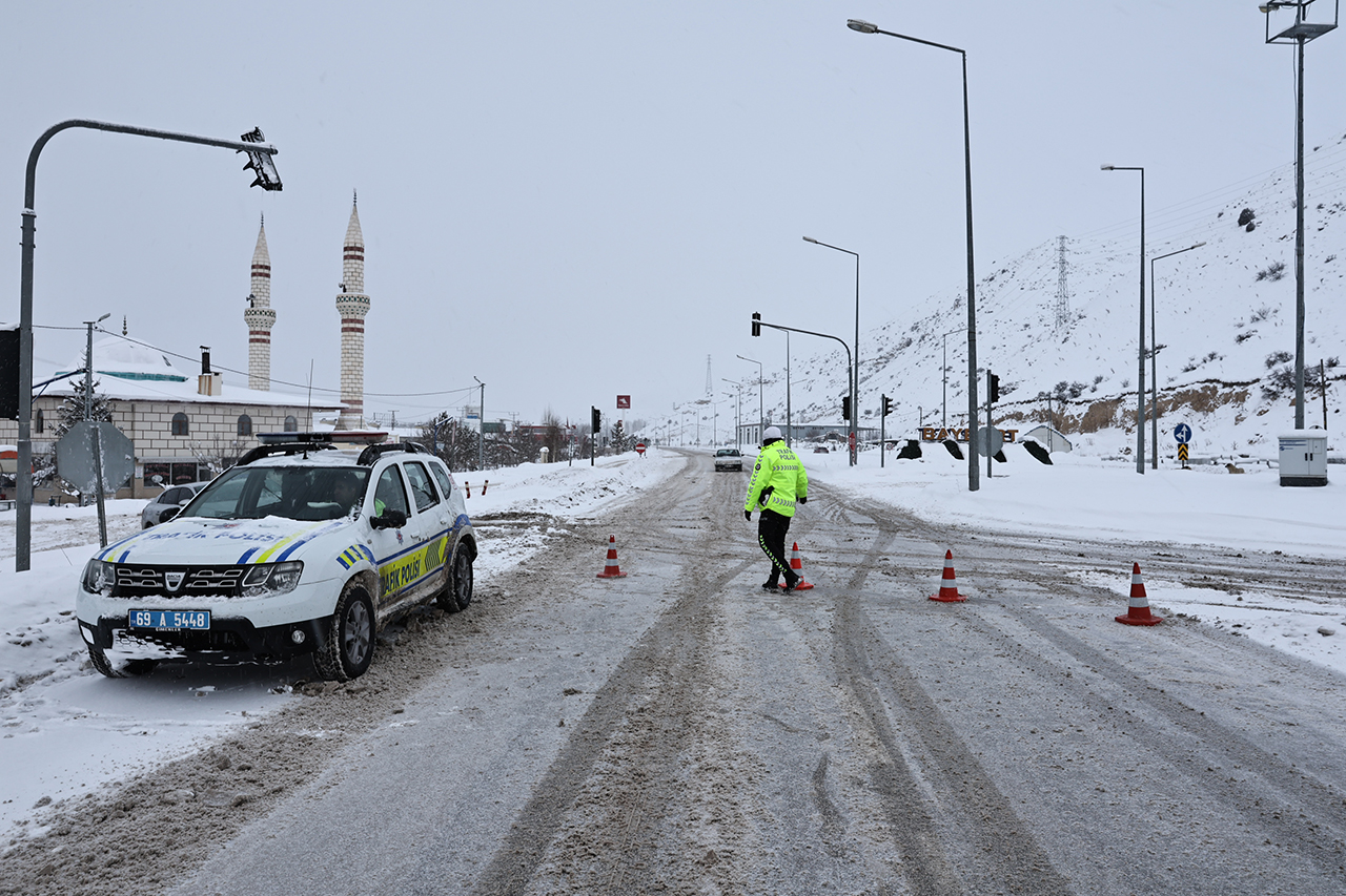 Bayburt Emniyet Müdürlüğü bölge trafik ekipleri, güzergahtaki 21 Şubat Küçük Sanayi Sitesi ile Aşağı Kop köyü mevkisinde araçların geçişine izin vermiyor.