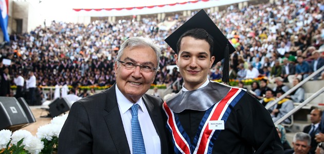 Törende adları okunan öğrenciler tek tek sahneye çıkarak diplomalarını aldı. Torun Deniz Baykal, diplomasını aldıktan sonra protokole gelerek, dedesi Deniz Baykal ve babaannesi Olcay Baykal ile kucaklaştı.