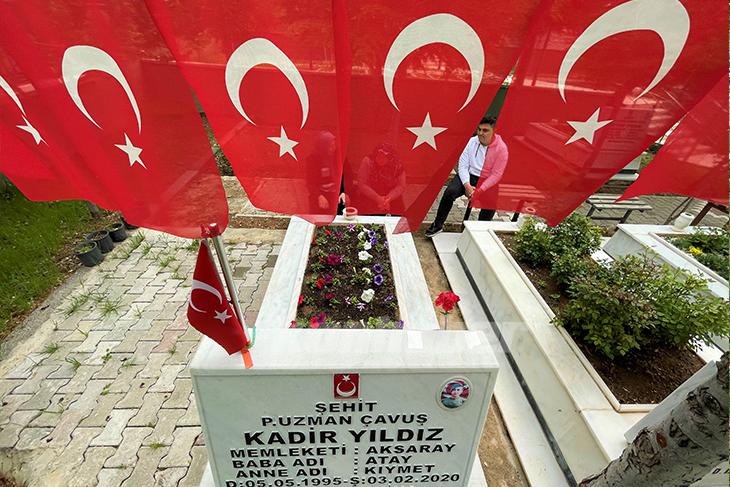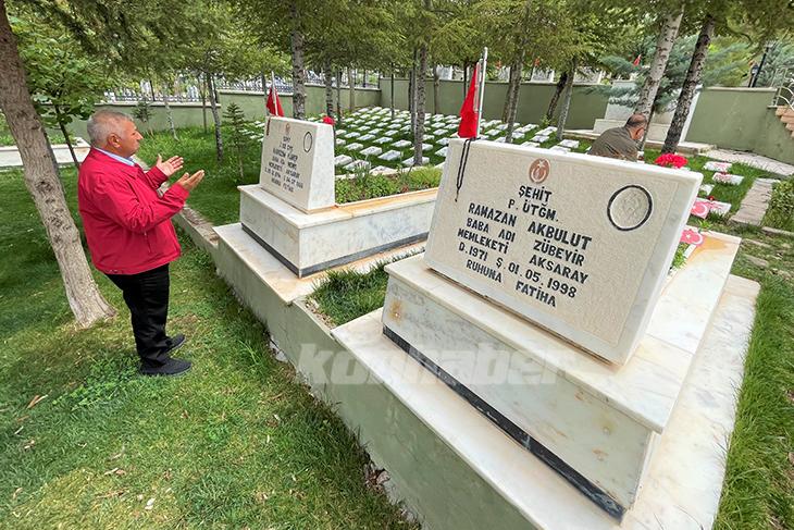 Aksaray Şehitliği'ne sabahın erken saatlerinden itibaren gelmeye başlayan şehit yakınları, mezarların başında Kur'an-ı Kerim okudu, dua etti.