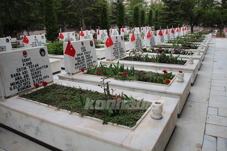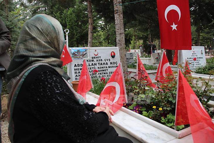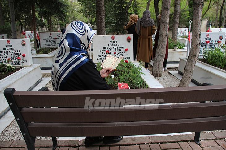 Konya Askeri Şehitliği'ndeki kabirleri ziyarete gelen şehit aileleri, dualar okudu, mezarlardaki çiçekleri suladı.