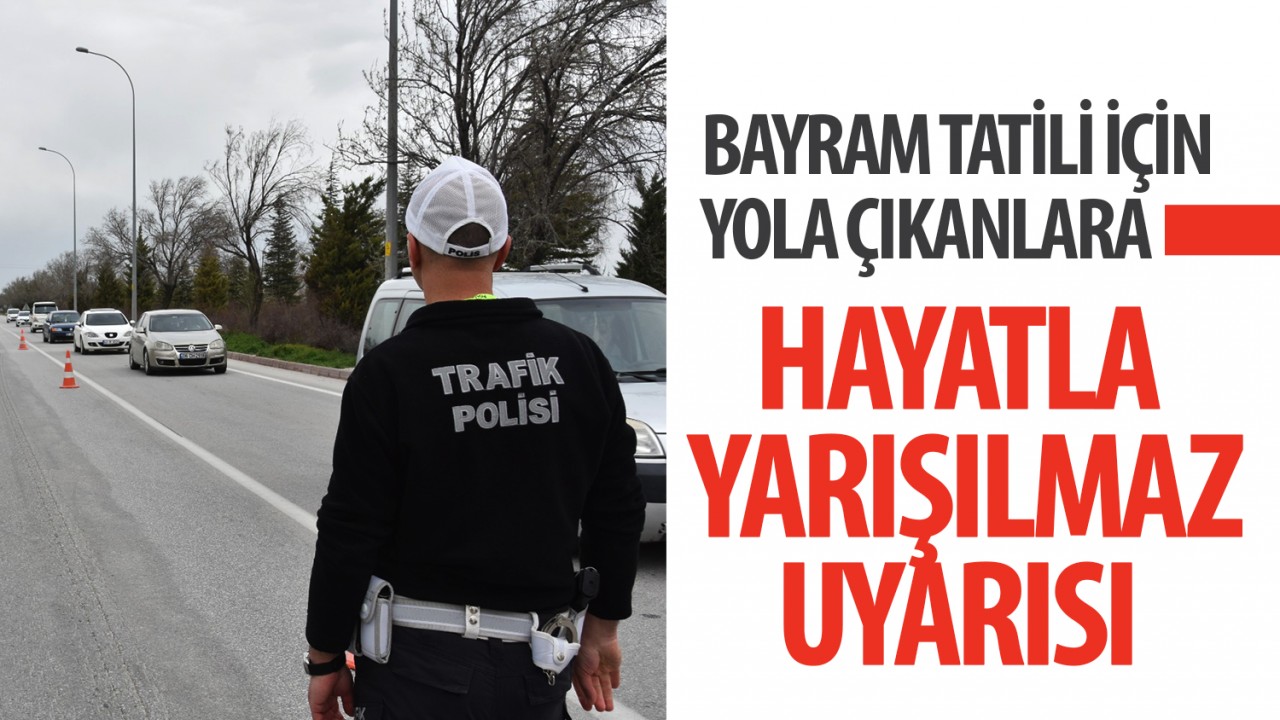 Denetimlerini arttıran ekipler, bayram tatili için yola çıkan vatandaşların güvenli bir şekilde seyahat etmelerini sağlamak ve trafik kazalarını önlemek amacıyla İçişleri Bakanlığının "Hayatla Yarışılmaz" mottosu kapsamında farkındalık oluşturarak sürücü ve yolcuların trafik kurallarına uymaları konusunda bilgilendirmeler yapmaya devam ediyor. (Yunus Köroğlu)