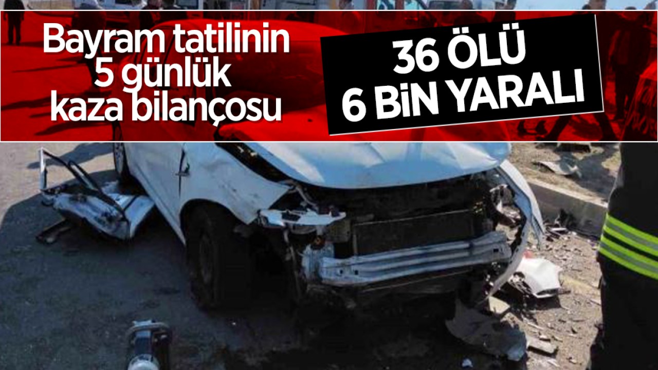İçişleri Bakanı Ali Yerlikaya, Bayram tatilinin ilk 5 gününde (Cumartesi, Pazar, Pazartesi, Salı ve Çarşamba) 36 kişinin hayatını kaybettiğini, 6 bin kişinin ise yaralandığını duyurdu.