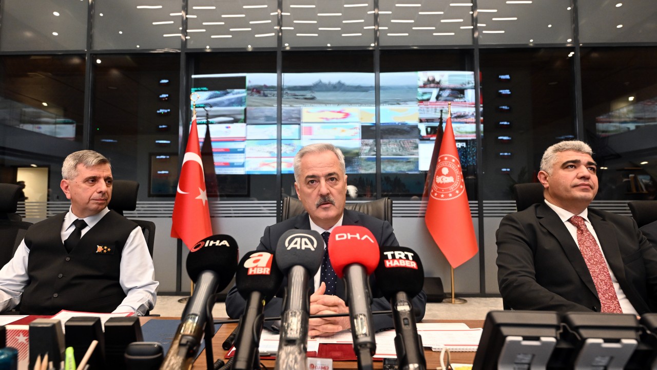 İçişleri Bakanlığı Genel Sekreteri Ömer Seymenoğlu, İçişleri Bakanlığı Güvenlik ve Acil Durumlar Koordinasyon Merkezi'nde (GAMER) düzenlenen toplantıda, Ramazan Bayramı trafik tedbirlerine ilişkin basın mensuplarını bilgilendirdi.