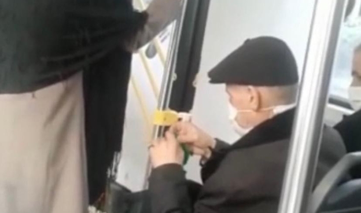 Edinilen bilgiye göre, belediye otobüsüne yolcu olarak binen yaşlı adam önce boş koltuğa oturdu. Daha sonra poşetinden çıkardığı el işini yapmaya başladı. Bu anlara şahitlik eden diğer yolcular ise gözlerine inanamazken, bu anlar cep telefon kameraları tarafından kaydedildi.