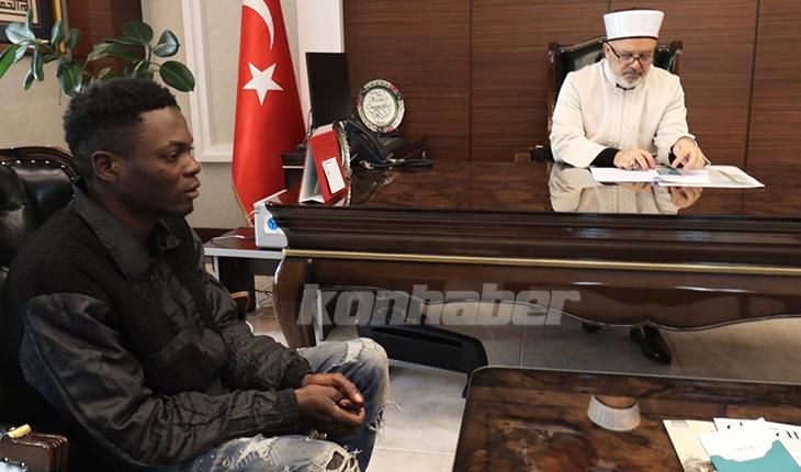 Beninli genç için Karatay ilçe Müftülüğünde ihtida merasimi düzenlendi. Şahitler huzurunda kelime-i şehadet geçiren genç Bilal ismini aldı.