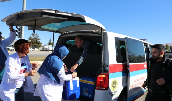 Atatürk Üniversitesi Araştırma Hastanesi Organ Nakli Eğitim Araştırma ve Uygulama Merkezi ekibince Bayburt'tan alınan 2 böbrek ve karaciğer, organ nakli aracıyla Erzurum'a getirilerek Organ ve Doku Nakli Erzurum Bölge Koordinasyon Merkezi ekibine teslim edildi.