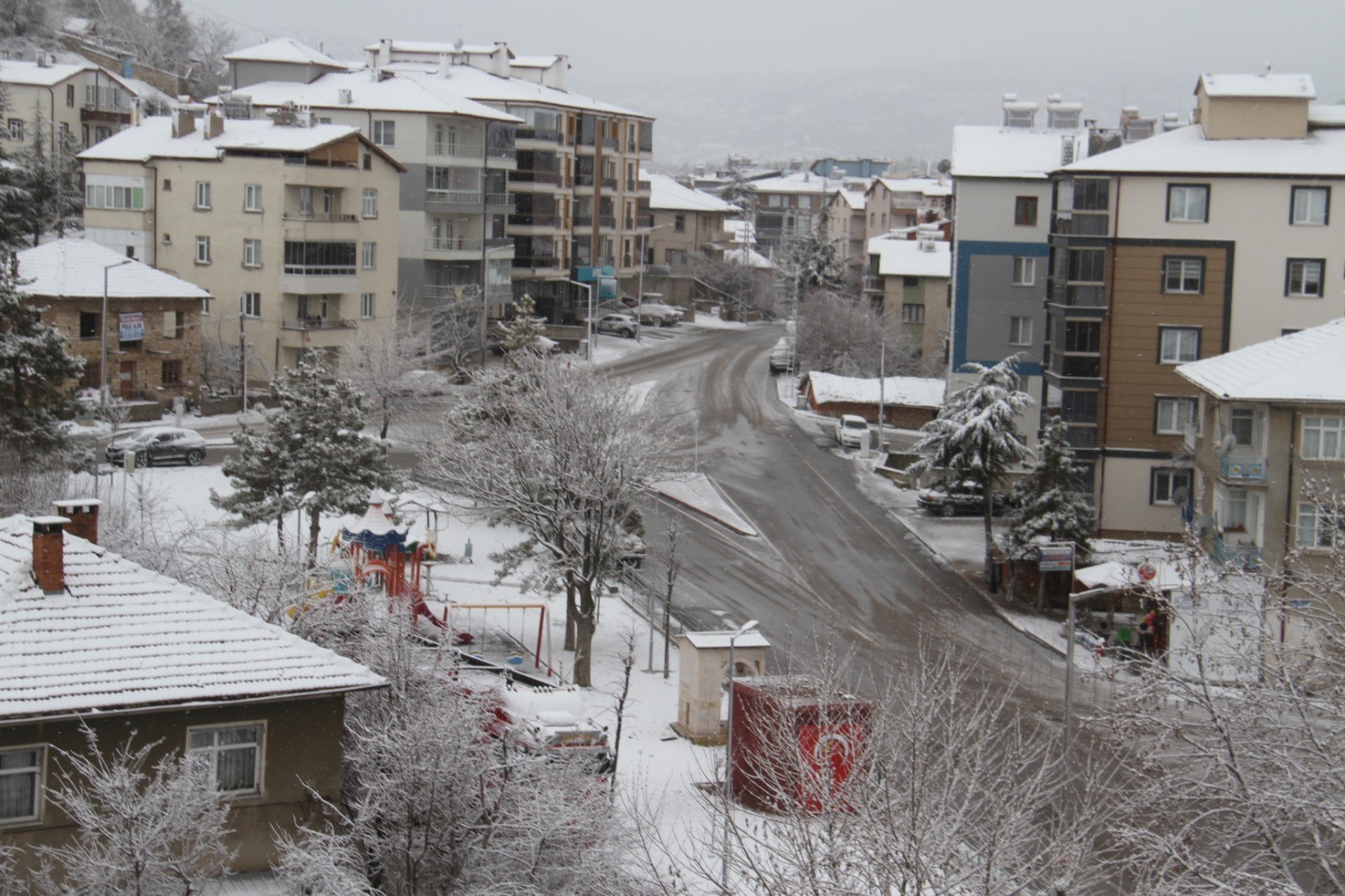 Konya'nın Beyşehir ilçesinde kar yağışının ardından ilçe beyaza büründü.