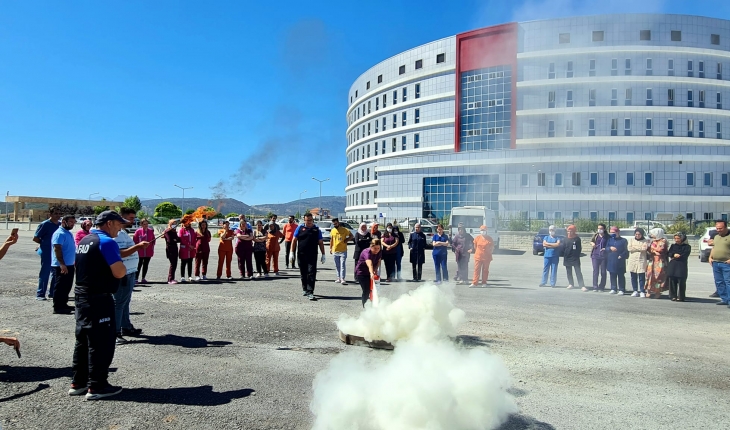 AFAD eğitmenleri tarafından hastane personeline yönelik verilen afet ve yangın farkındalık eğitimlerinin ardından sahada deprem anı uygulamalı tahliye ve yangın tatbikatları yapıldı.