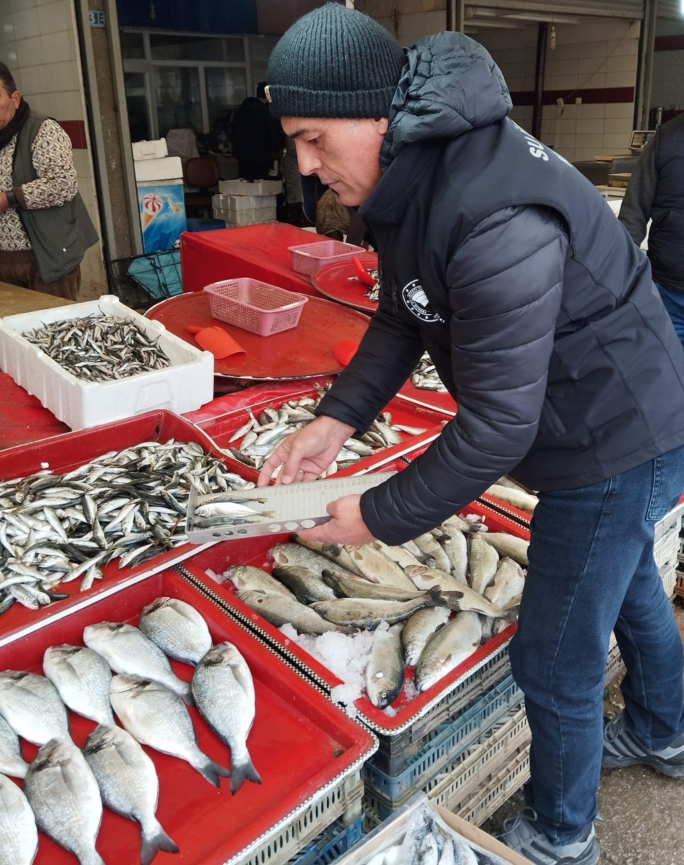 Tezgahlarda satışa sunulan deniz ve tatlı su ürünü balıkların boy limitine uygunluğu yapılan ölçümlerle tespit edildi. Satıcılara tatlı su ürünlerinden sazan balığı için 40 santim, sudak ve kadife sazanı için 26 santim, tatlı su kefali için de 20 santim boy yasağı olduğu hatırlatılarak bu limitlerin altındaki su ürünlerinin sadece avlanmasının değil, satışının da cezai müeyyide gerektirdiği kaydedildi.