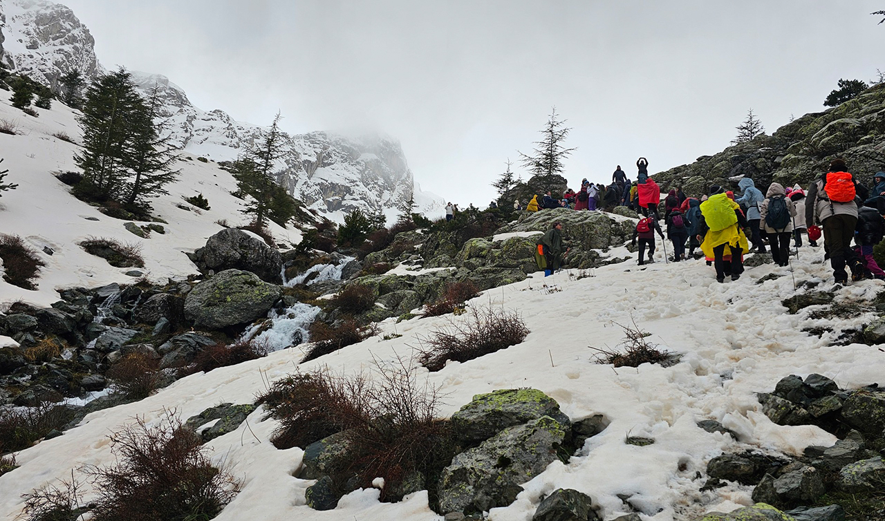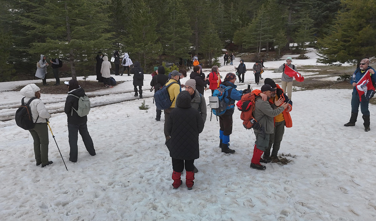 Katılımcılar, beyaz örtüyle kaplı ormanda, eriyen karların ve yağmurun oluşturduğu pınarlar arasında coşkulu bir yürüyüş yaptı. Karlarla kaplı doğa, doğaseverlere unutulmaz anlar yaşattı.