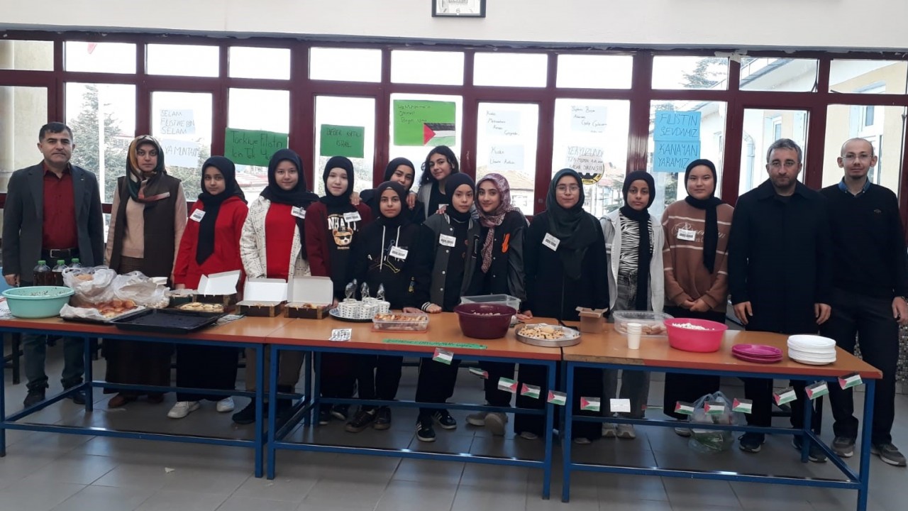 Eşrefoğlu İmam Hatip Ortaokulu öğretmenlerinden Murat Atıcı öncülüğünde gerçekleştirilen etkinliğe, öğrenciler ile veliler destek verdi.Kermeste satışa sunulan ürünlerden elde edilen gelir, Filistin'e ulaştırılmak üzere Okul Müdürü Mustafa Karabacak tarafından İlçe Müftüsü Veysel Kükrek'e teslim edildi.