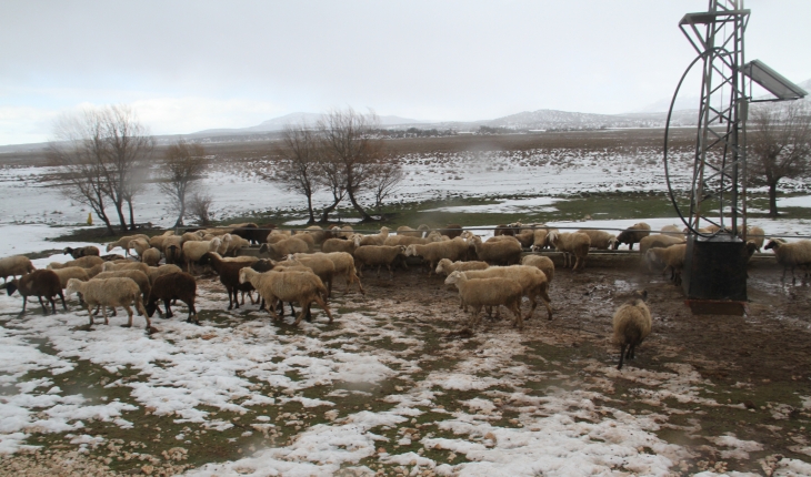 Beyşehir'de koyunların içme su ihtiyacı güneş ve rüzgar enerjisinden karşılanıyor