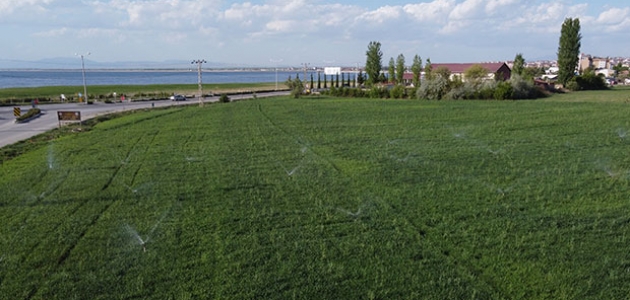 Konya'nın Beyşehir ilçesinde beklenen yağışların düşmemesi üzerine bazı çiftçiler tarlalarını sulamaya başladı.