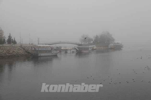 Beyşehir Gölü kıyılarındaki parklara ve sahil şeridine gelen vatandaşlar ise sisli havada özçekim yaptı.