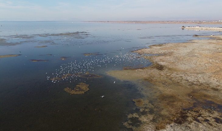 Sazlık alanın önüne kadar kuraklık olan kıyılar var. Kıyılar çamur balçıktı, kurudu. Artık yürüyebilirsiniz de gezebilirsiniz de. Bunlar hep suyun hacminin, miktarının azalmasından kaynaklanıyor." diye konuştu.
