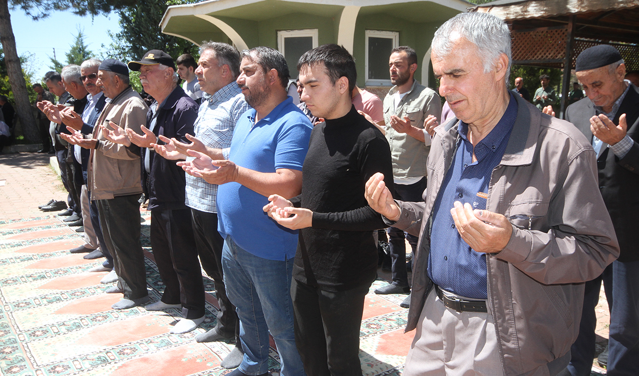 Sadıkhacı Eyüp Sultan Camisi'nde öğlen namazında bir araya gelen çiftçiler ve vatandaşlar, İlçe Müftüsü Veysel Kükrek’in yaptırdığı yağmur duasında ellerini semaya açarak yağış dileğinde bulundu.