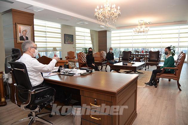 Ziyarette KTÜN Bilgisayar Mühendisliği Bölümü öğrencisi ve BİLMÖK temsilcileri Ahmet Giray Topçular, Sumru Nayir ve Gunef Şahin, bu yıl Konya Teknik Üniversitesi’nde düzenlenecek kongre hakkında Rektör Özçelik’i bilgilendirdi.