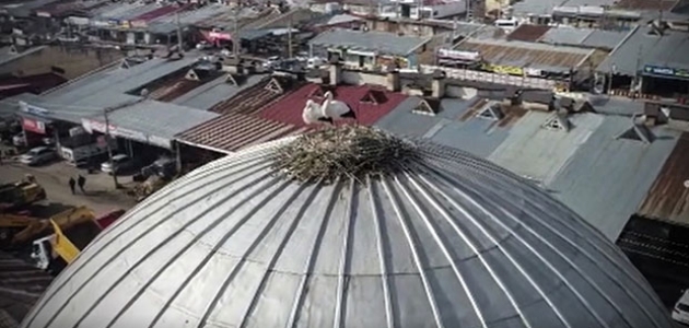 Bingöl'de bir caminin kubbesine yuva yapan 2 leylek, yaklaşık 4 yıldır göç etmedi.