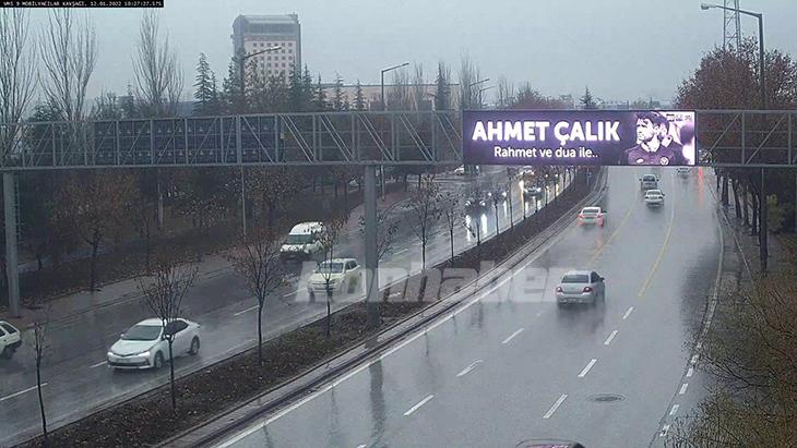 Şehrin işlek caddelerinde kurulu olan elektronik tabelalarda “Ahmet Çalık rahmet ve dua ile…” yazısına yer verildi.