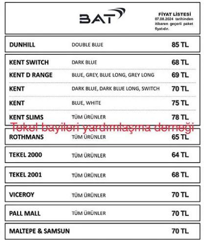 Tekel Bayileri Yardımlaşma Derneği (TBYD) Başkanı Erol Dündar, yarından itibaren geçerli olacak şekilde BAT grubu tarafından sigaralara zam yapıldığını duyurdu.
