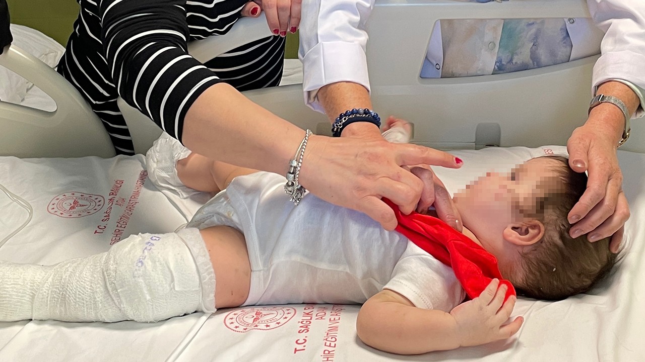 Kahramanmaraş depremlerinden etkilenen Hatay'ın Antakya ilçesinde, sarsıntının şiddetiyle beşiğiyle birlikte 5'inci kattan düşen 8 aylık bebeğin tedavisi devam ediyor.