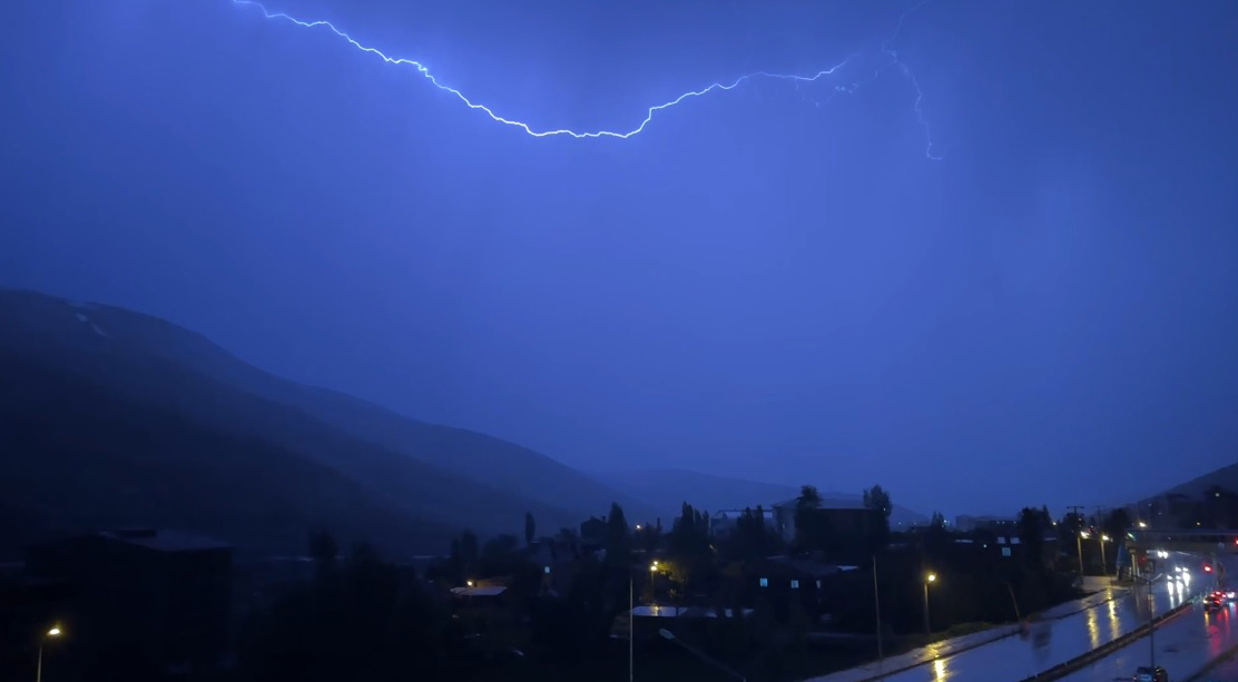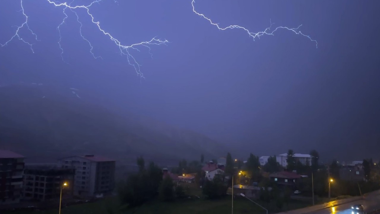 Bitlis'te akşam saatlerinde sağanak yağış etkili olurken, çakan şimşekler geceyi aydınlattı. Şimşeklerin geceyi aydınlattığı anlar kamera ile görüntülendi.