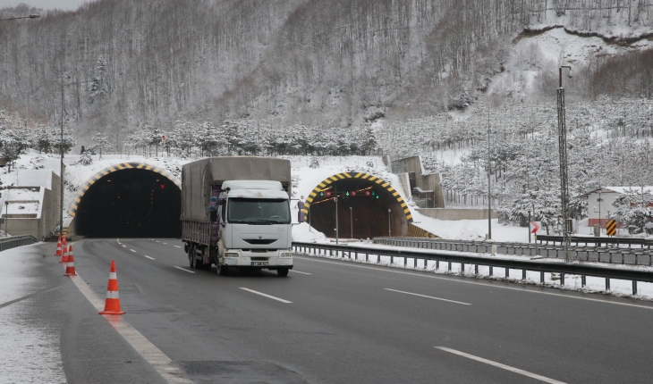Anadolu Otoyolu'nun Bolu Dağı Tüneli kesiminde kar yağışı etkisini gösteriyor. Sürücüler ise zaman zaman ilerlemekte güçlük çekiyor.