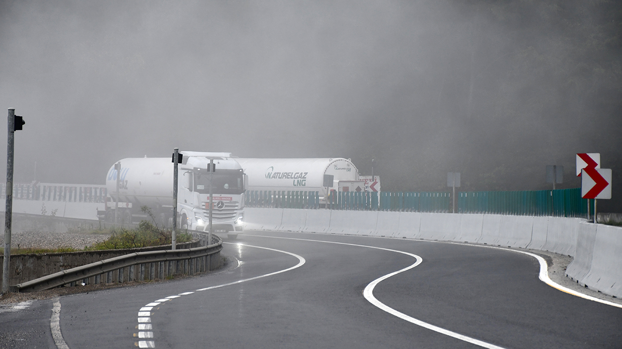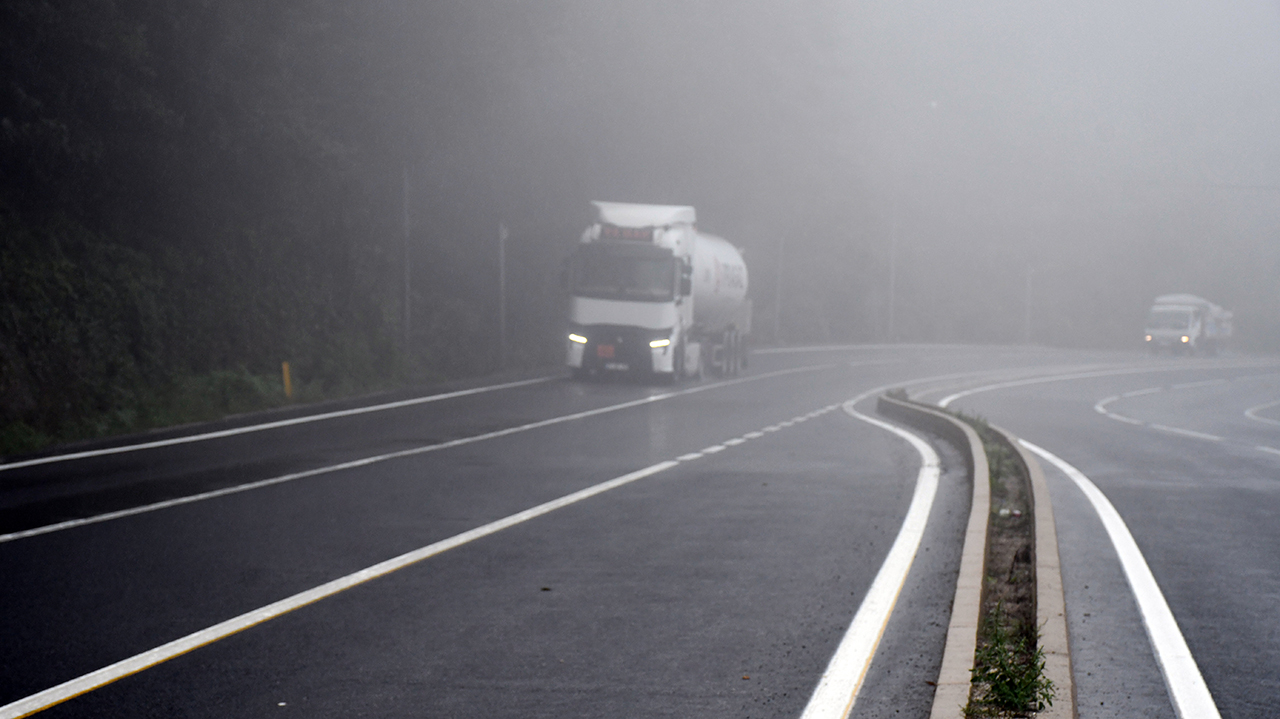 Görüş mesafesinin sis nedeniyle yer yer 35 metreye kadar düşen güzergahı kullanan sürücüler, yolda dikkatli ilerledi.