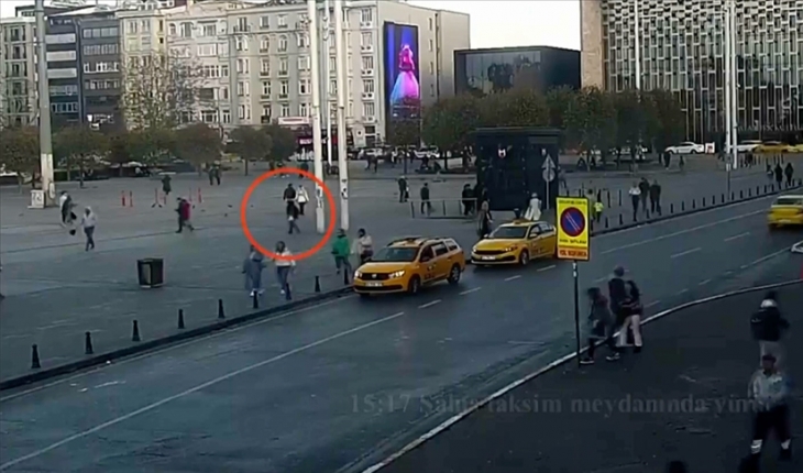 Görüntülerde, olay günü saat 15.17'de Taksim Meydanı tarafından İstiklal Caddesi'ne giren teröristin, sırt çantası ve elindeki bir poşetle caddede yürüdüğü görülüyor.