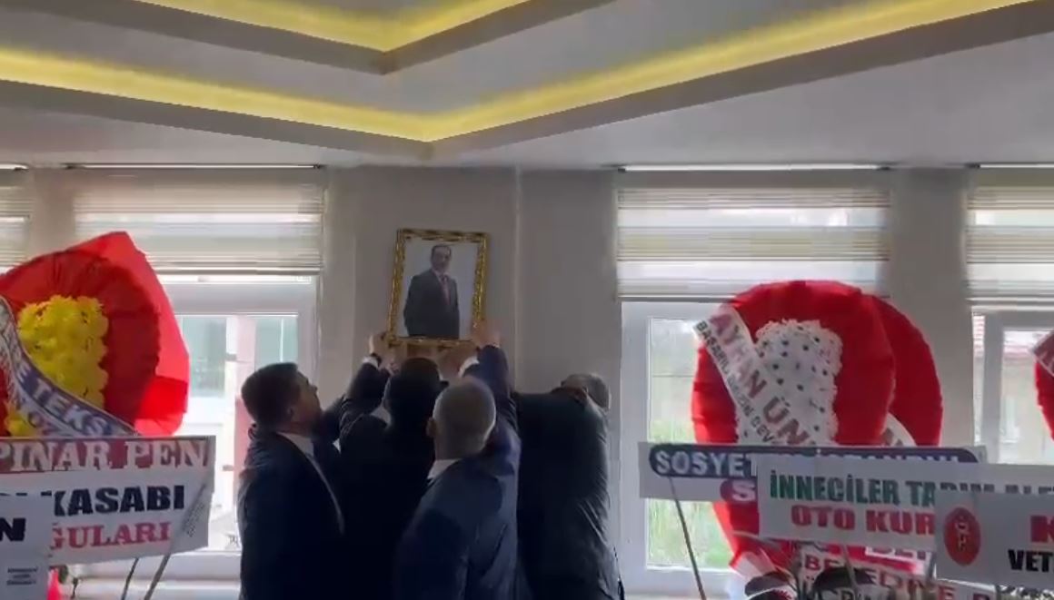Devir teslimin ardından Büyük Birlik Partisi’nin merhum Lideri Muhsin Yazıcıoğlu’nun fotoğrafı makam odasına asıldı.