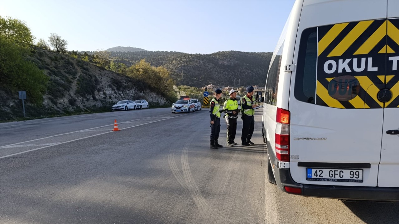 Konya'nın Bozkır ilçesinde okul servis araçları ve sürücüleri denetlendi.