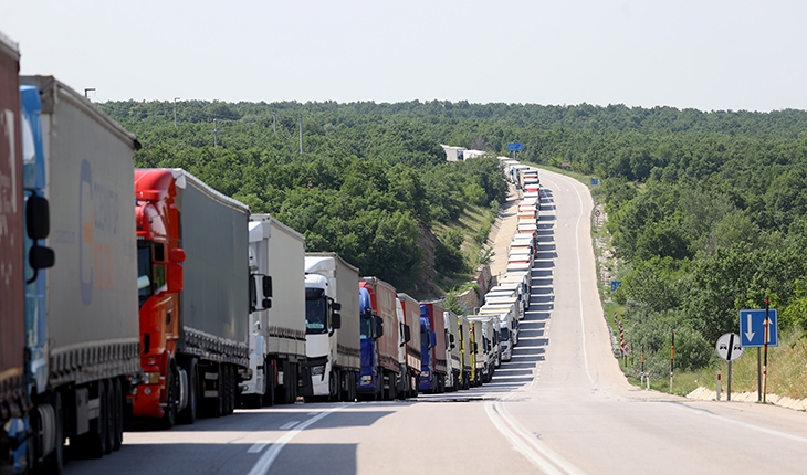İhracat tırlarının oluşturduğu yoğunluğa Bulgaristan'ın yanıt verememesi nedeniyle Hamzabeyli Sınır Kapısı'nda 22 kilometreye yakın tır kuyruğu oluştu.