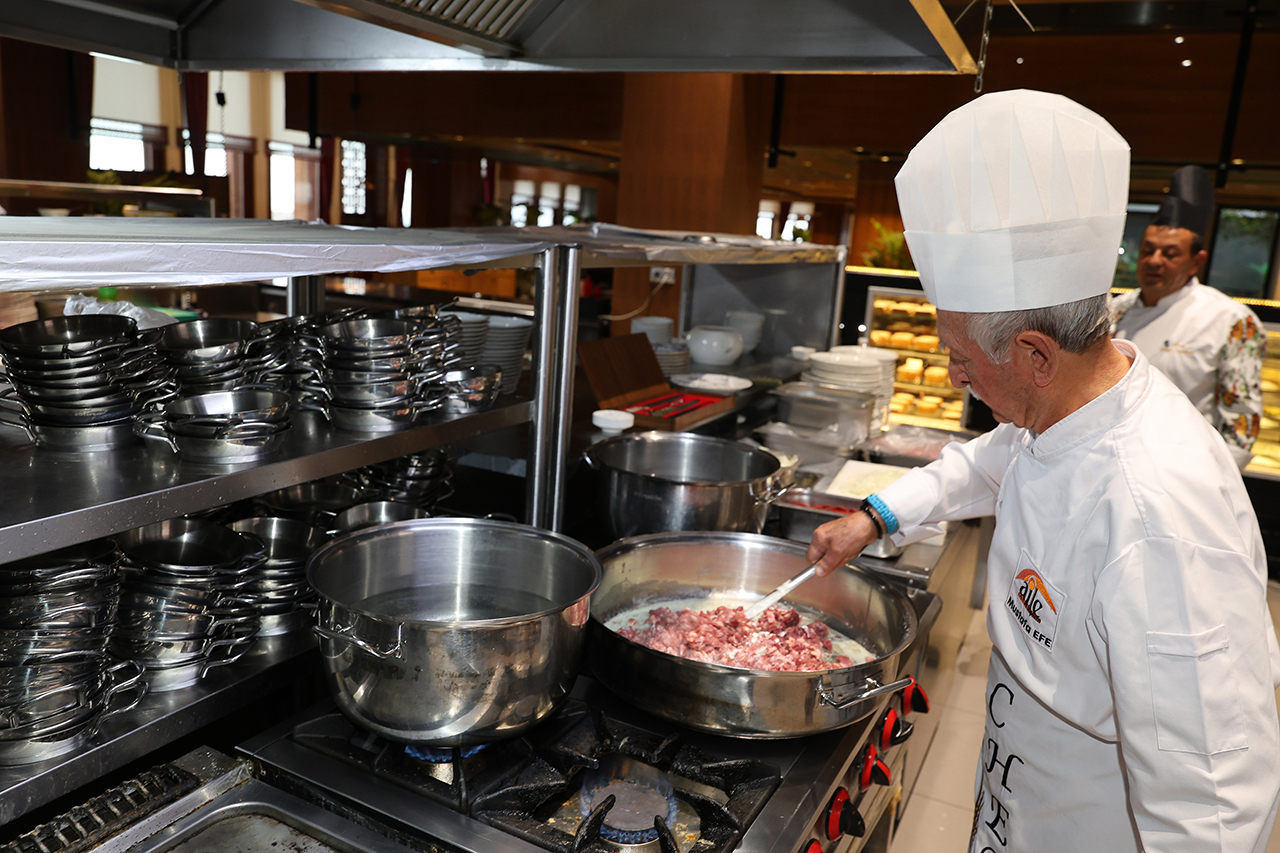 Akyokuş Kasrı’nda gerçekleştirilen etkinlikte, Sille Meliha Ercan Huzurevi sakini ve üstat Necip Fazıl Kısakürek’in eski aşçısı Mustafa Efe, restoranın genç aşçılarıyla birlikte mutfağa girerek geleneksel Konya lezzetlerini hazırladı.