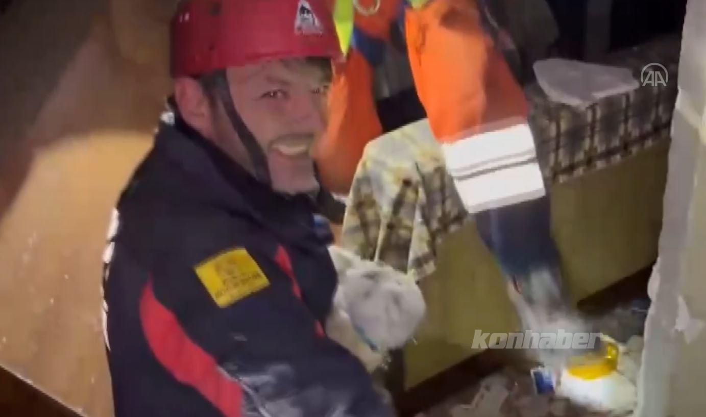 Ekipler, sepetli vinçle balkondan girdikleri dairede 11 gündür mahsur kalan kediyi depremin 257'inci saatinde kurtardı.