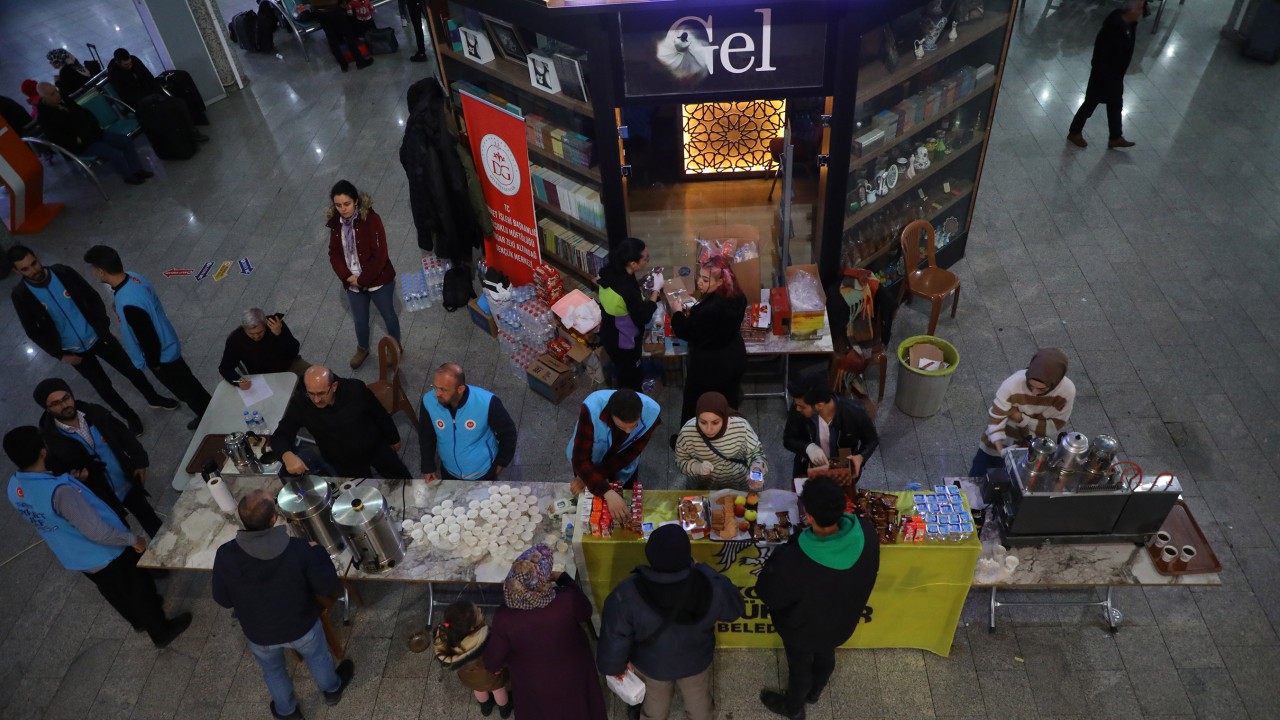 Konya Büyükşehir Belediyesi Şehirlerarası Otobüs Terminali’nde sağlık kabini, afet koordinasyon masası, turuncu masa ile depremzede vatandaşların barınma ve giysi ihtiyaçlarına çözüm bulan Konya Büyükşehir Belediyesi ikramlara bulunarak 24 saat hizmet veriyor.