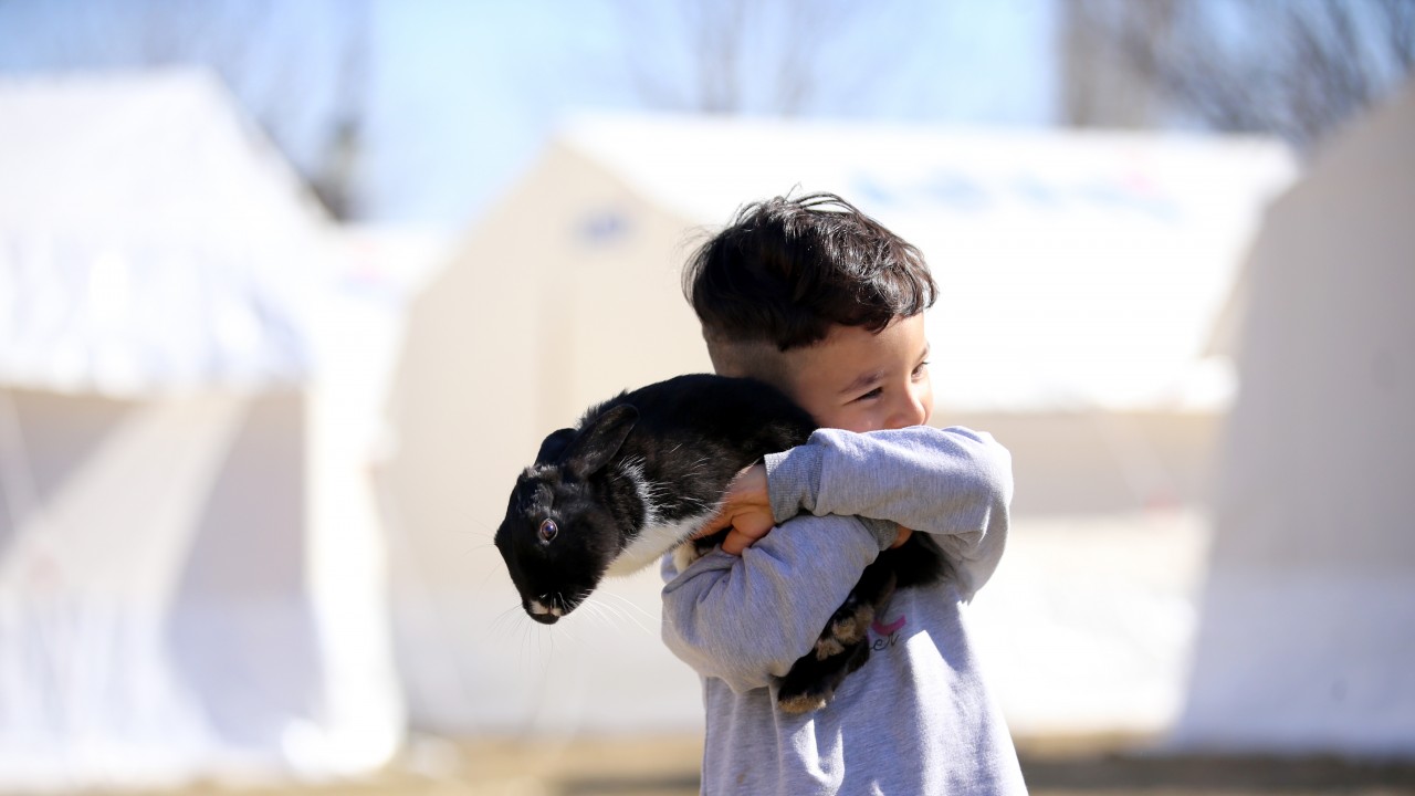 Depremzede aileler evlerinde besledikleri kedi, köpek, kuş ve tavşan gibi evcil hayvanları çadır kente getirdi.Çocukların en büyük ilgi odağı ise "Boncuk" adı verilen tavşan oldu. Çocukların peşinden koşarak yakalamaya çalıştığı tavşan zaman zaman yetişkinleri de tebessüm ettirdi.