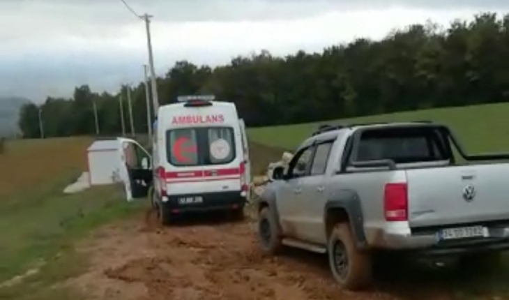 Kocaeli’nin Körfez ilçesinde kalp krizi geçiren hastayı almaya giderken çamura saplanan ambulans, traktör yardımıyla kurtarıldı.
