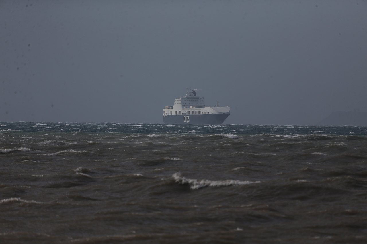 Çanakkale Boğazı'nda etkili olan kuvvetli lodos nedeniyle transit gemi trafiği çift yönlü geçici olarak durduruldu.
